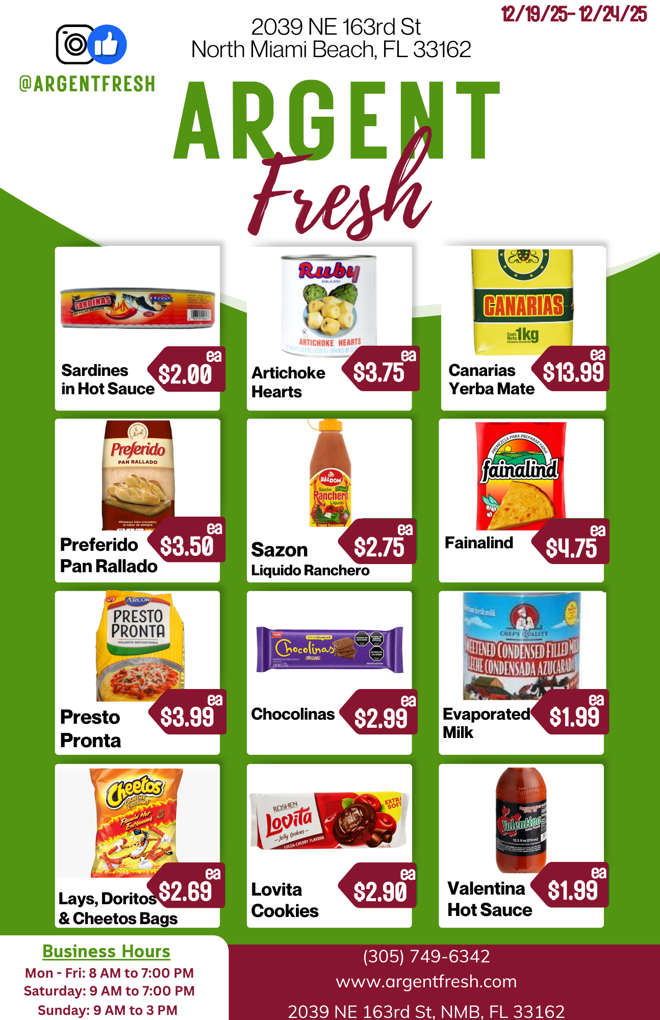 These specials are available from 12/19/25- 12/24/25 Online or In - Store! For more information give our store a call @ (305) 749-6342