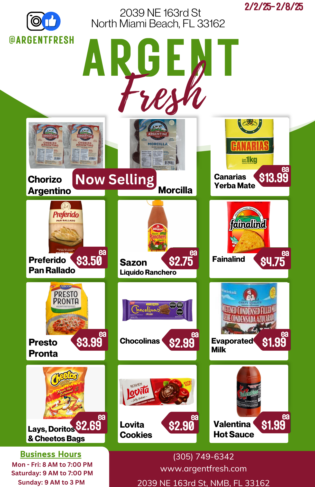 These specials are available from 2/2/25- 2/8/25 Online or In - Store! For more information give our store a call @ (305) 749-6342