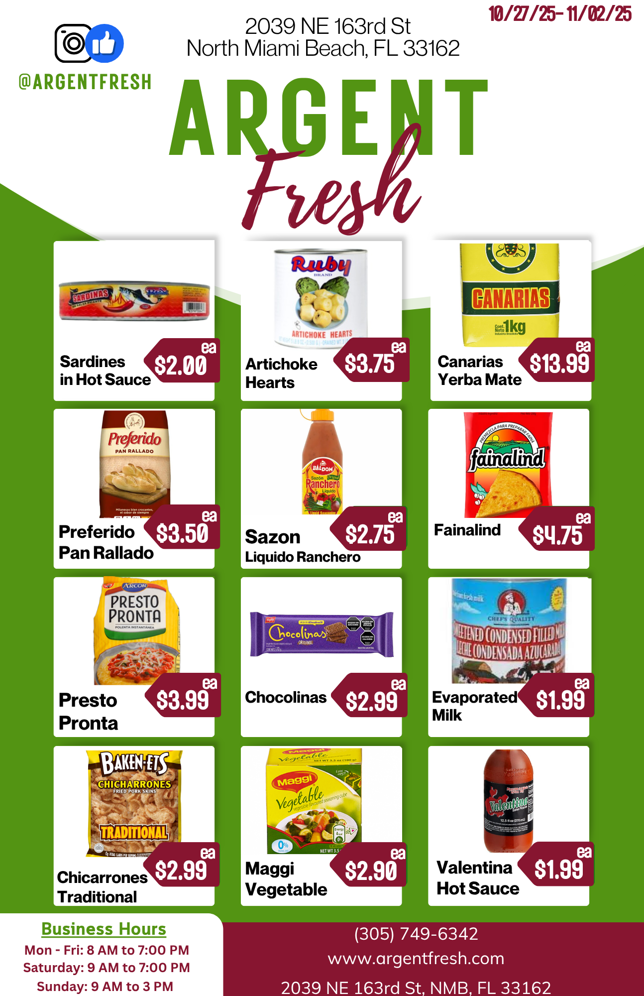 These specials are available from 10/27/25- 11/02/25 Online or In - Store! For more information give our store a call @ (305) 749-6342